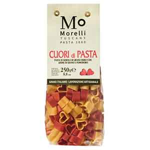250 g Herznudeln, 2-farbig Die Herznudeln in zwei Farben von Morelli verbinden italienische Handwerkskunst mit einer fröhlichen Optik. Die Nudeln eignen sich ideal für festliche Anlässe, romantische Menüs oder als farbenfrohe Überraschung auf jedem Teller.