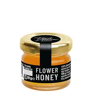 30 g Blumenhonig Dieser feine Blumenhonig in seinem hübschen kleinen Glas ist ein wahres Geschmackserlebnis: sanft, aromatisch und voller natürlicher Süße. Ob pur auf frischem Brot, im Tee oder als natürliche Süße im Joghurt, dieser Honig bringt die Sonne der Blumen direkt in Ihre Küche.