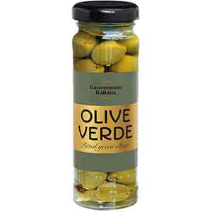 Zutaten 50% entkernte grüne Oliven (EU), Wasser, Salz, Säuerungsmittel- Citronensäure, Antioxidans- Ascorbinsäure.Glutenfrei, vegan und halal. Nährwertangaben pro 100 g Energie 548 kj, 133 kcal Fette 14 g - davon gesättigte Fettsäuren 2 g Kohlenhydrate 0 g - davon Zucker 0 g Proteine 1,2 g Salz 3 g