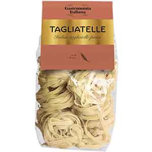 300 g Tagliatelle Die Tagliatelle sind klassische italienische Nudelbänder, die durch ihre flache und breite Form bestechen. Sie bestehen aus hochwertigen Zutaten und bieten eine angenehme, zarte Textur. Ideal für verschiedene Saucen, nehmen die Tagliatelle diese gut auf und sorgen für ein ausgewogenes Geschmackserlebnis.